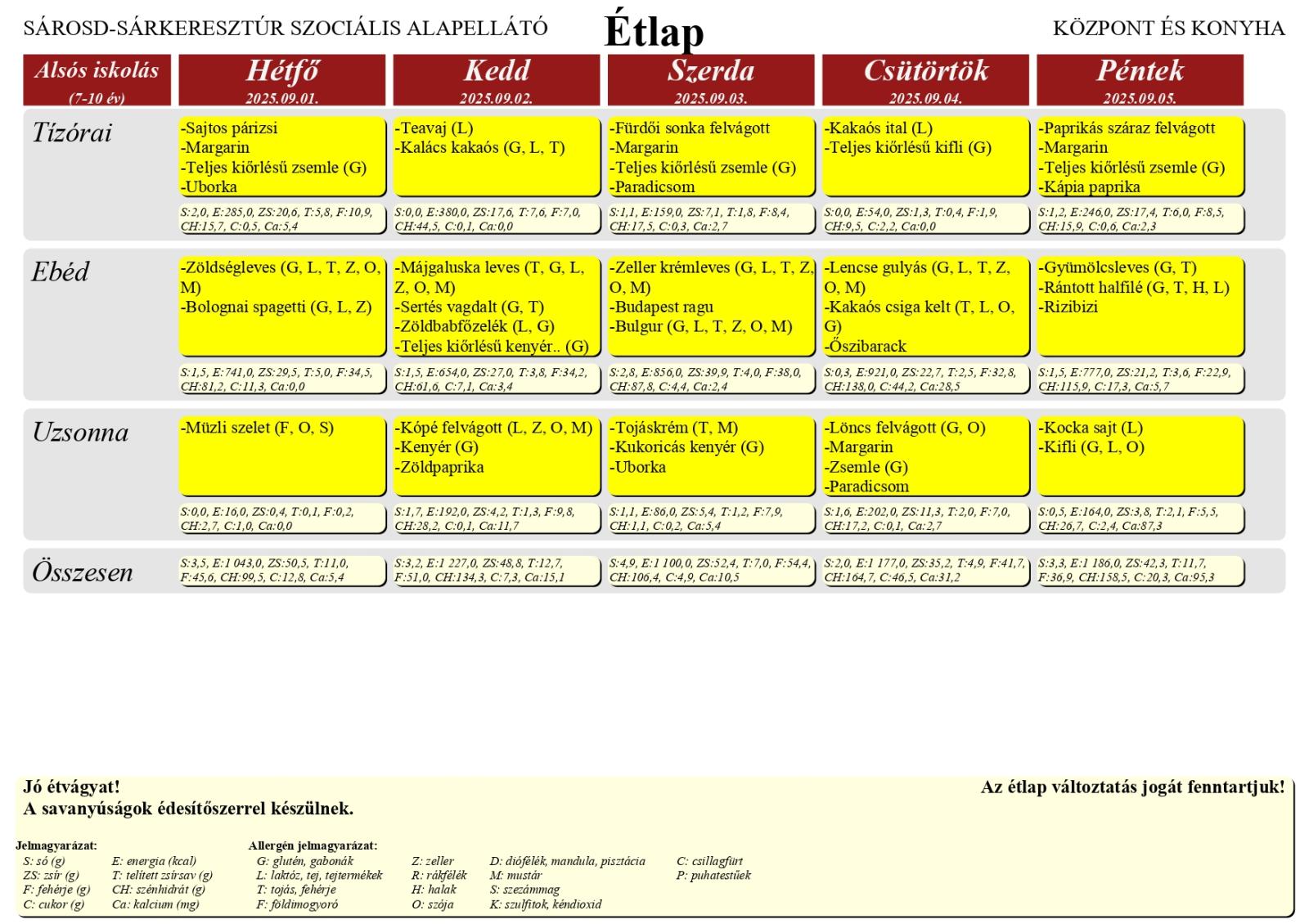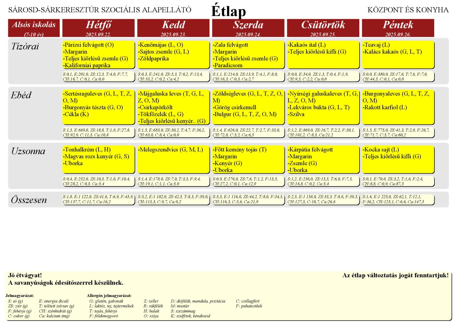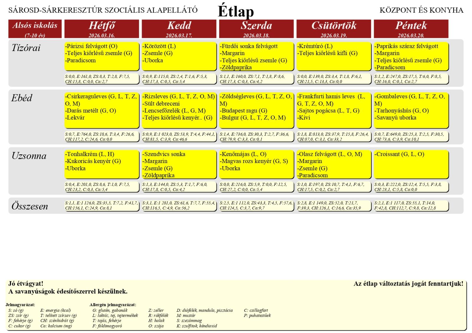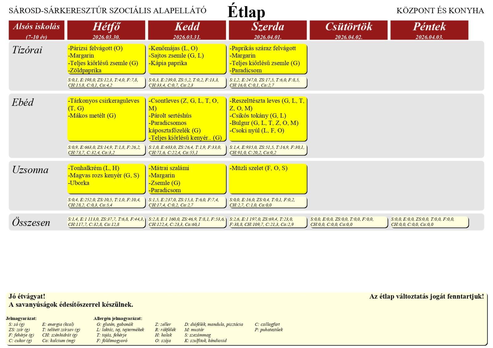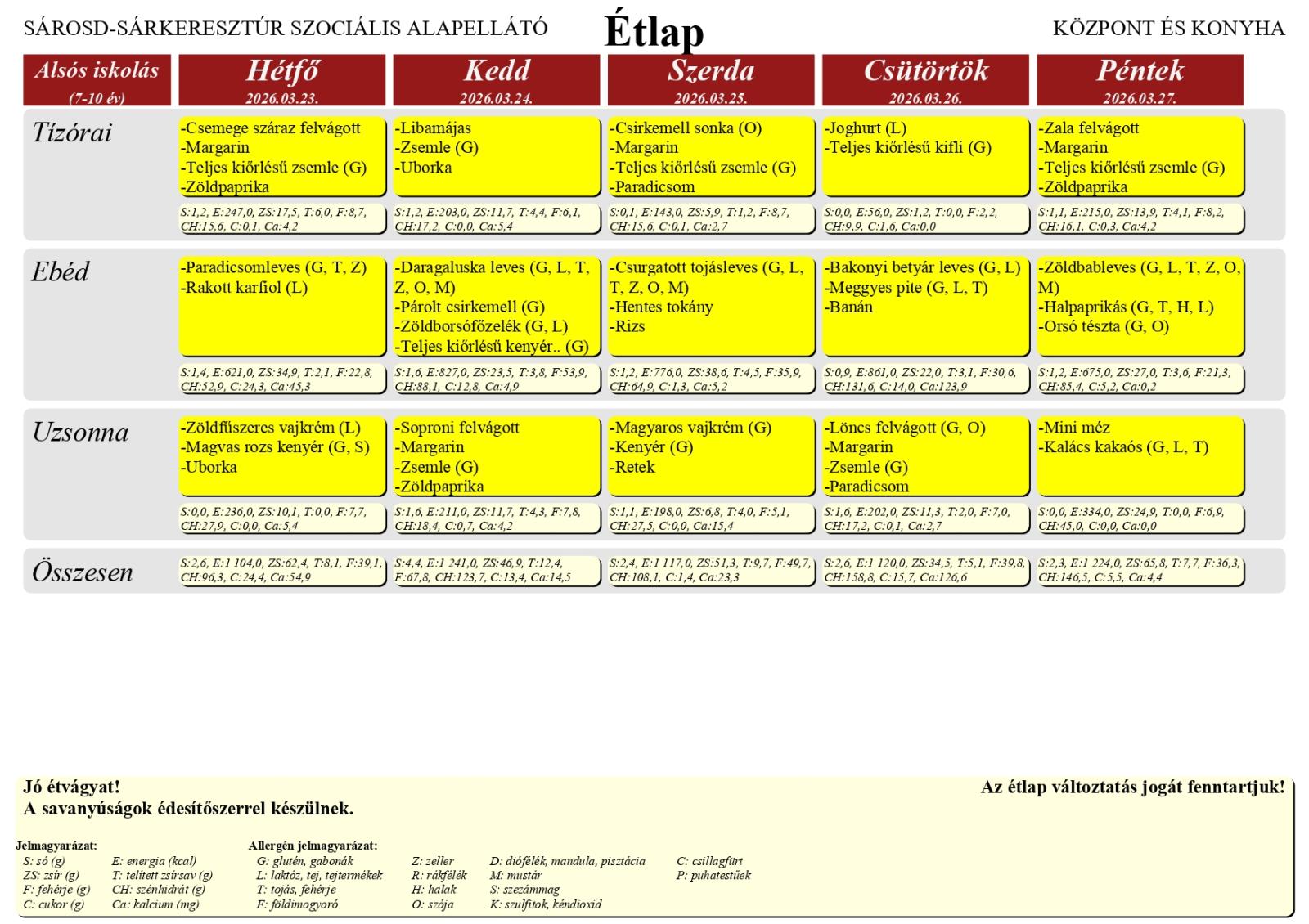 A Farkas Gyula Baptista Általános Iskola és Óvoda honlapján elérhető a Sárosd–Sárkeresztúr Szociális Alapellátó Központ és Konyha étlapja, amely az iskola tanulói számára került feltöltésre.