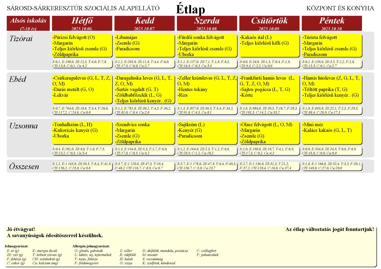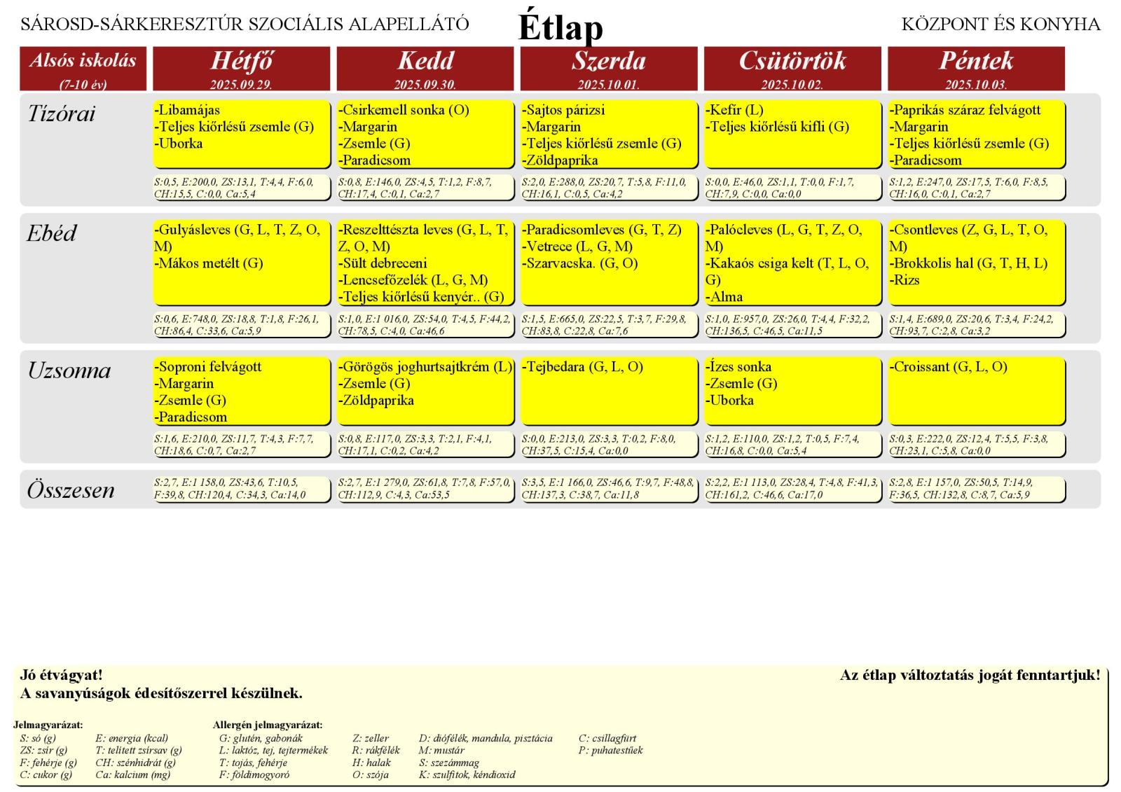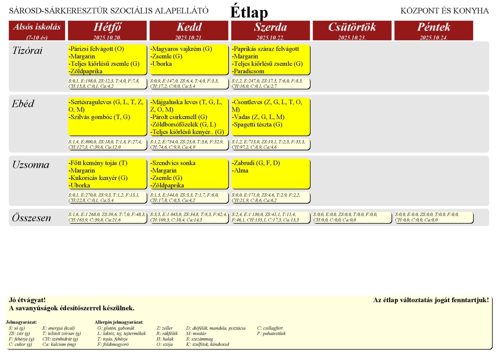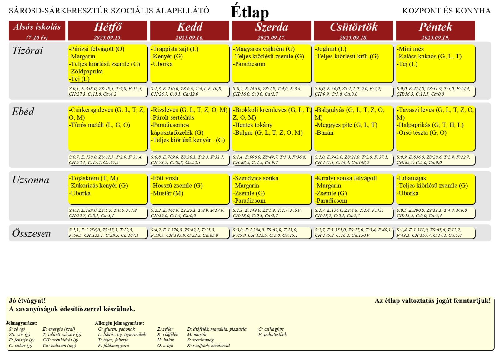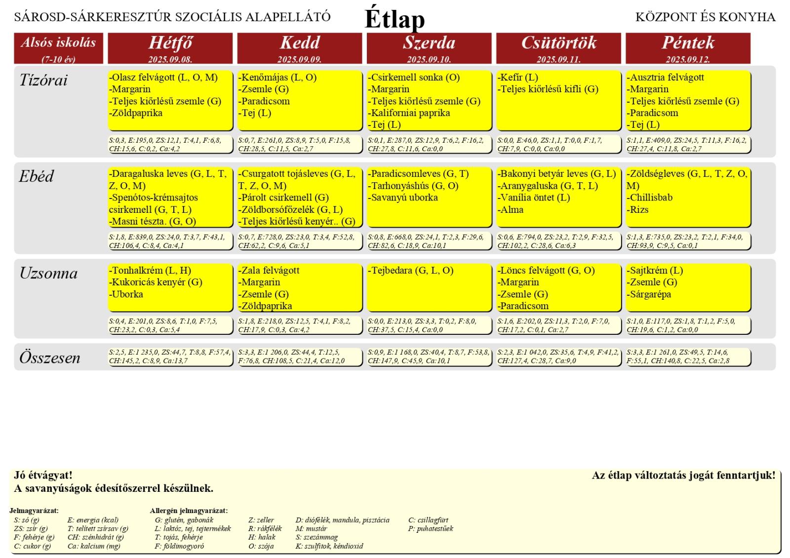 A Farkas Gyula Baptista Általános Iskola és Óvoda honlapján elérhető a Sárosd–Sárkeresztúr Szociális Alapellátó Központ és Konyha étlapja, amely az iskola tanulói számára került feltöltésre.