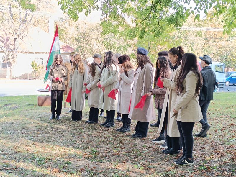 Az 1956-os forradalom és szabadságharc évfordulóján iskolánk közössége ismét együtt hajtott fejet a hősök emléke előtt. Az idei ünnepi műsort a 8. osztályos tanulók adták elő, akik meghatóan és átéléssel idézték fel a forradalom eseményeit, hangulatát és üzenetét.