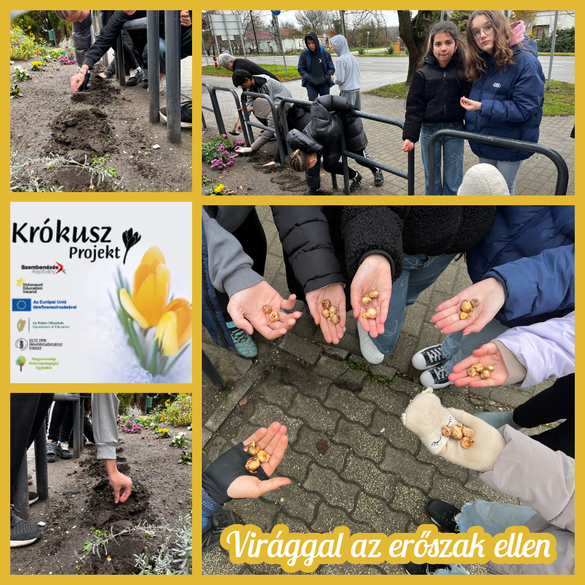Egy kicsi, de annál fontosabb lépést tettünk: iskolánk ősszel csatlakozott a Szembenézés Alapítvány által életre hívott Krókusz-projekthez, melynek keretében ma a diákokkal együtt krókuszhagymákat ültettünk.