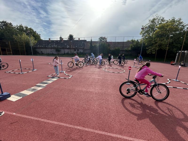Szeptember 30-án diákjaink biciklivel és rollerrel teljesítették a pályákat, miközben játékos formában gyakorolták a KRESZ szabályait.