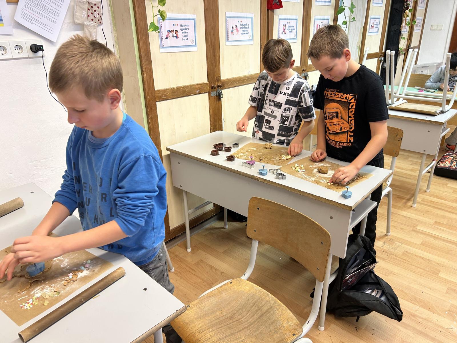 A múlt héten igazi karácsonyi hangulat költözött iskolánkba: megrendeztük a hagyományos mézeskalács-sütést, amelyen több osztályunk is részt vett. A gyerekek nagy lelkesedéssel gyúrták, szaggatták és díszítették a mézeskalácsokat, miközben az iskola folyosóit belengte a finom illat.